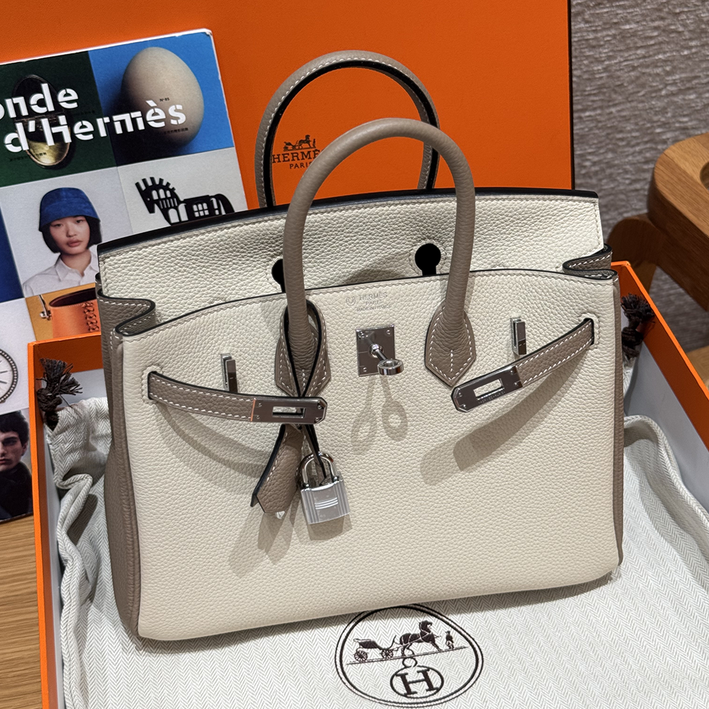 최고퀄 에르메스 올수공 버킨 25 Craie & Gris tourterlle 토고 가죽 은장 > 여성 가방