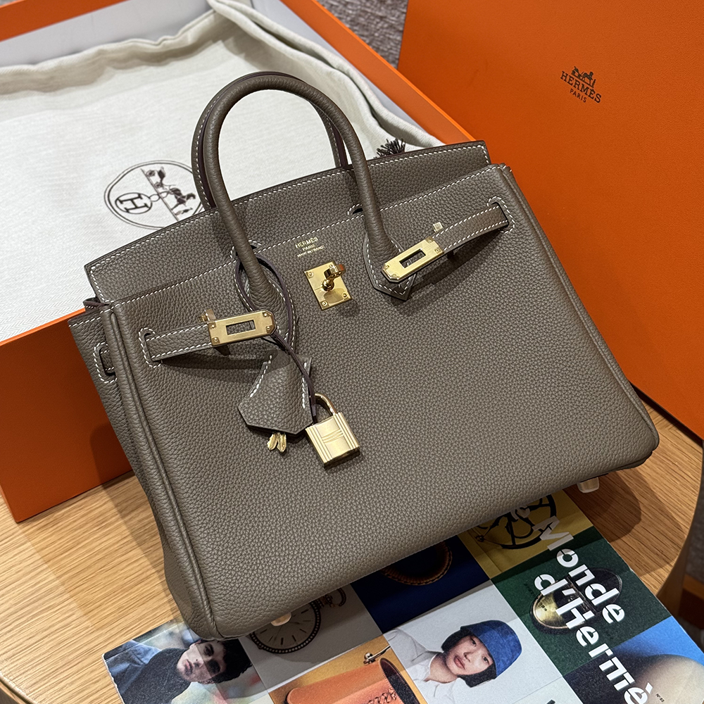 • 최고퀄 에르메스 올수공 버킨 25 Etoupe 토고 가죽 금장