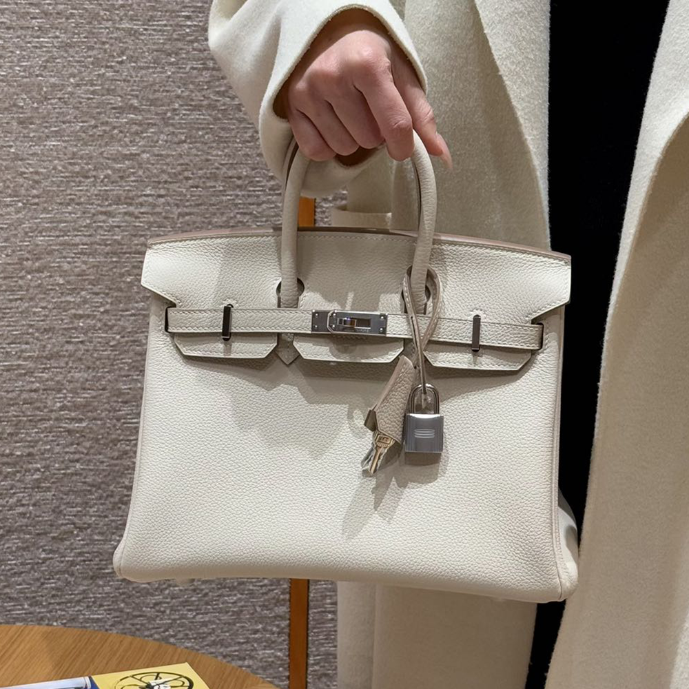 • 최고퀄 에르메스 올수공 버킨 25 Craie 토고 가죽 은장