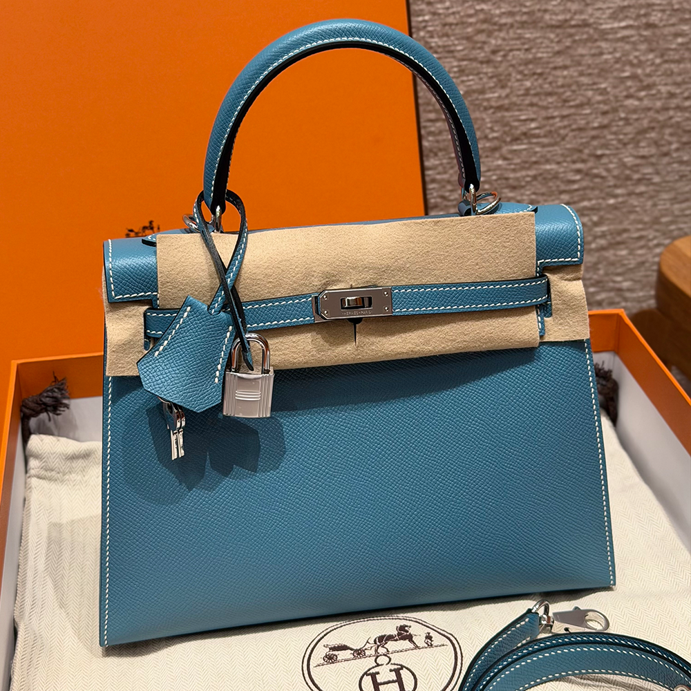 최고퀄 에르메스 올수공 켈리 25 Bleu jean 엡송 가죽 은장 > 여성 가방