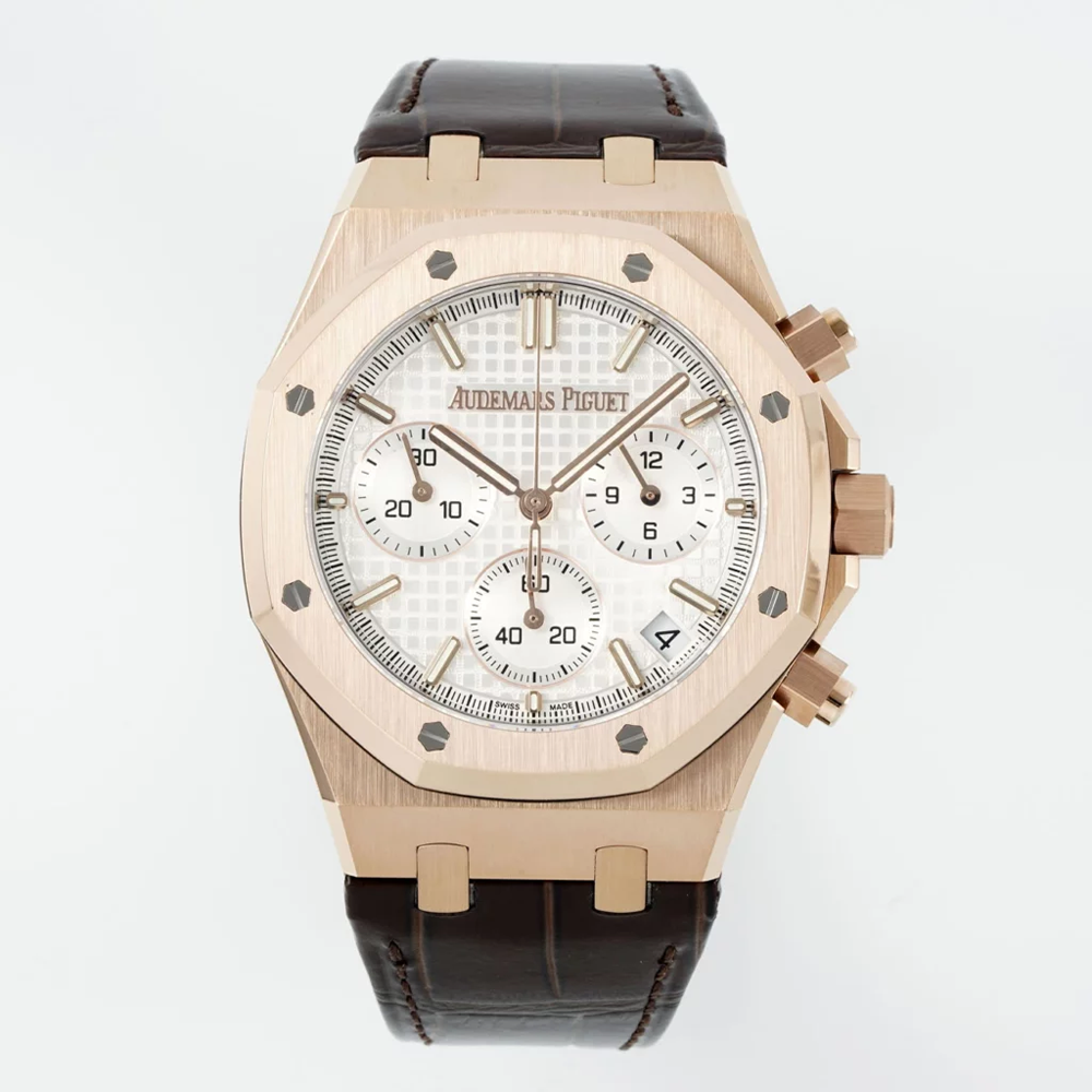 • 최고퀄 DD공장 오데마피게 로얄오크 크로노 그래프 화이트 다이얼 로즈골드 가죽밴드 41mm 26240