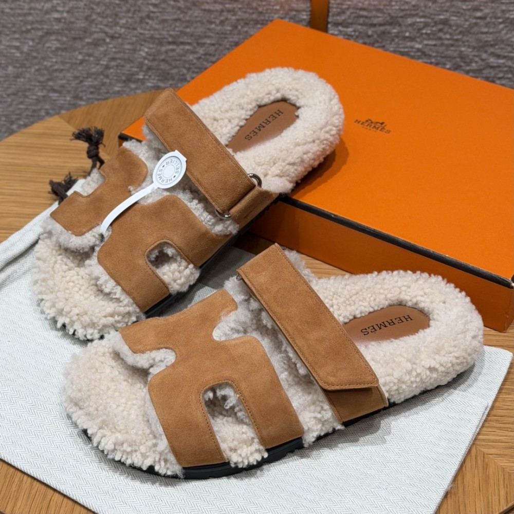 최고퀄 에르메스 시프레 시어링 퍼 가죽 스트랩 샌들 브라운 > 여성 신발