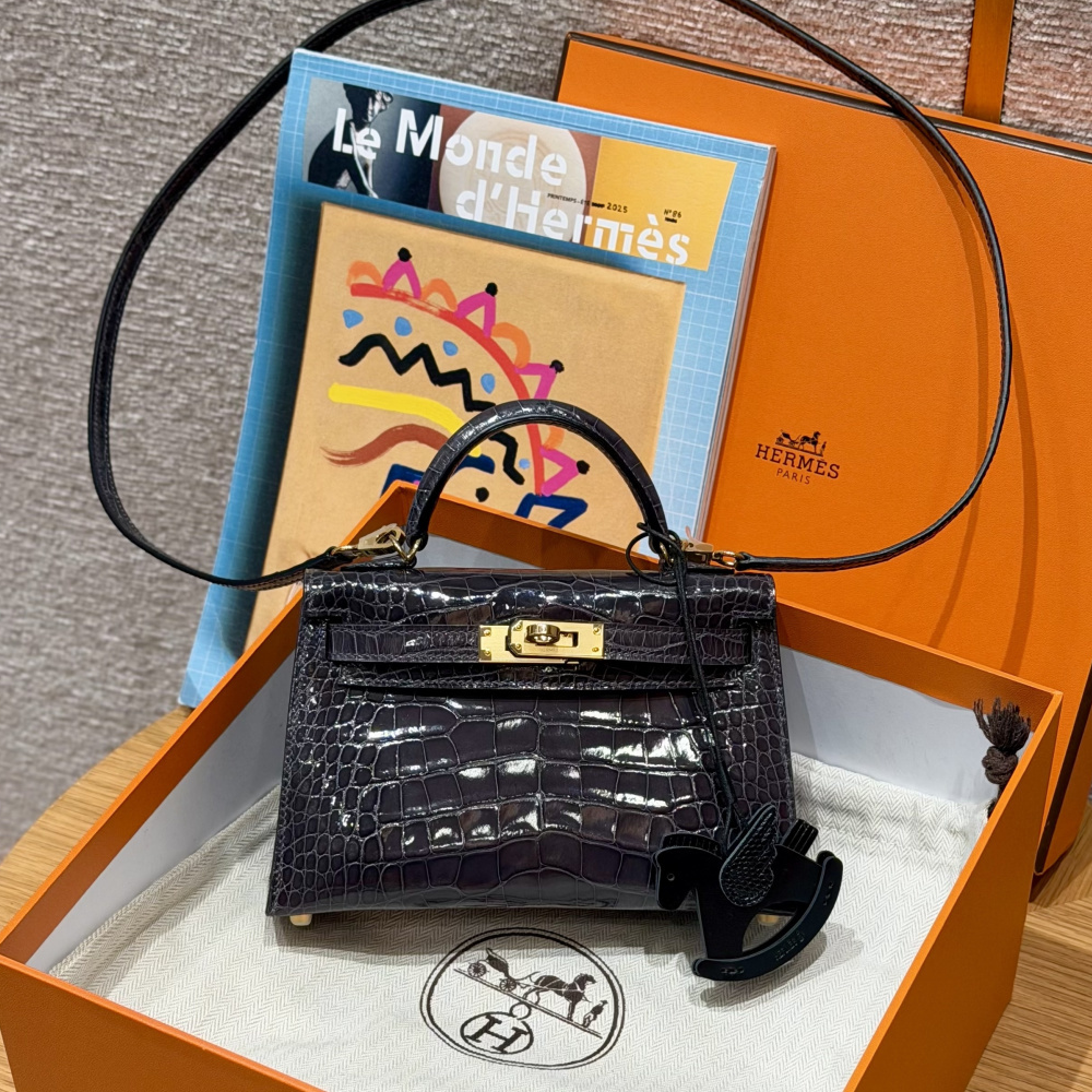 • 최고퀄 에르메스 올수공 켈리 2 미니 Graphite 악어 가죽 금장