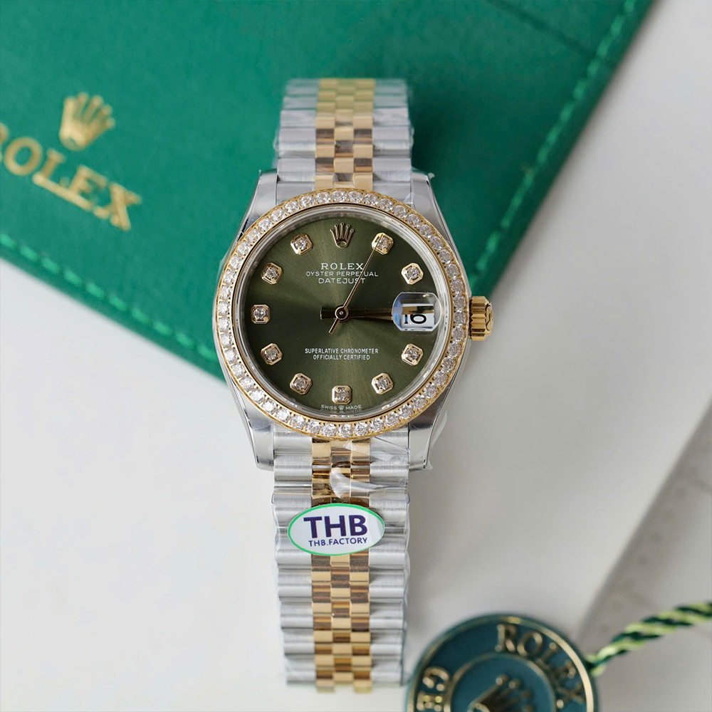 • 최고퀄 THB공장 여성용 롤렉스 데이저스트 그린 10P 다이얼 옐로우 콤비 다이아 베젤 31mm