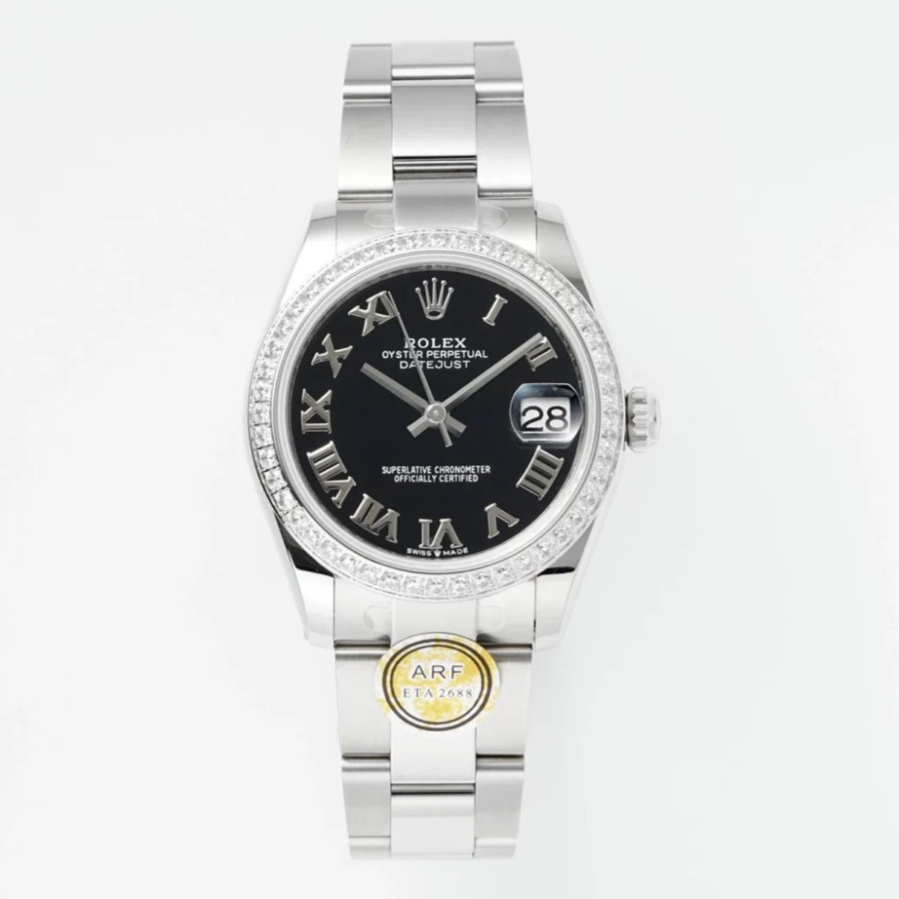 • 최고퀄 ARF공장 여성용 롤렉스 데이저스트 블랙 로만 다이얼 다이아 베젤 스틸 31mm 278384